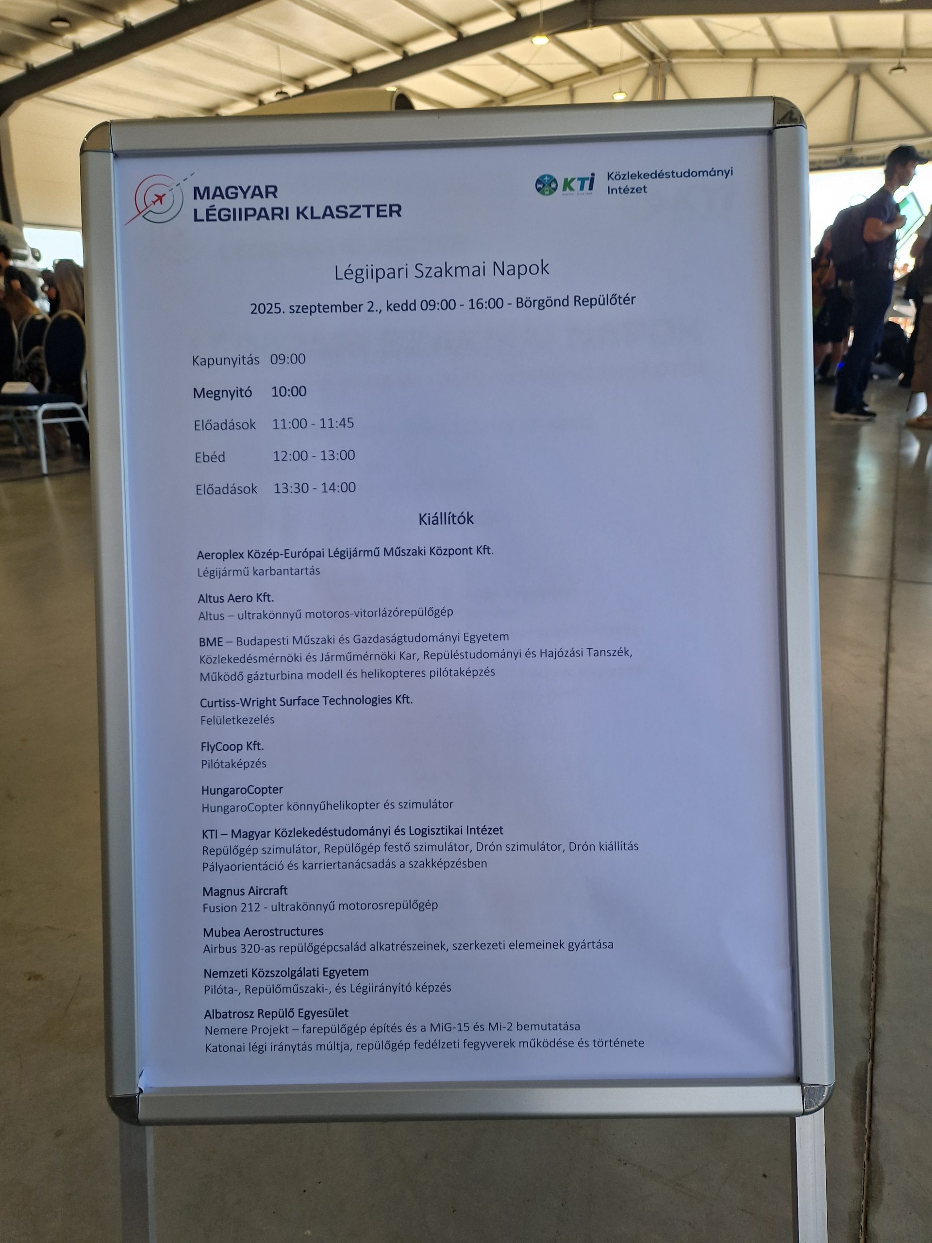 A Magyar Légiipari Klaszter szervezésében, a Közlekedéstudományi Intézet és az Albatrosz Repülő Egyesület támogatásával 2025. szeptember 2-3-án, harmadik alkalommal került sor a Légiipari Szakmai Napok megrendezésére Börgöndön.